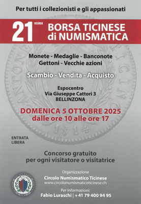 Hier finden Sie jeweils die Termine der Münzenmessen die in der Schweiz und Liechtenstein stattfinden.
